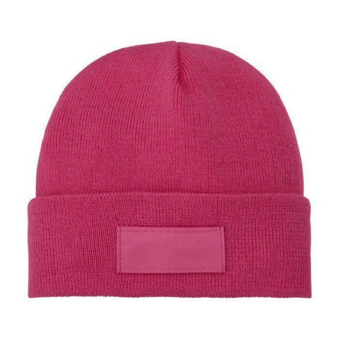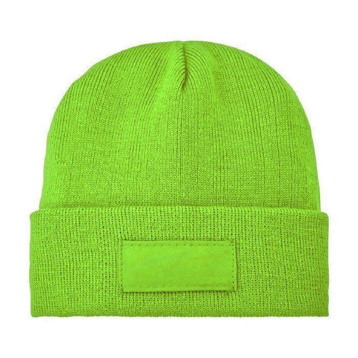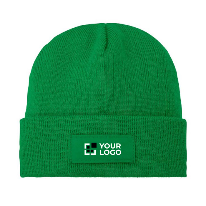 Einlagiger Beanie mit doppelt gefaltetem Rand. Aufnäher für die Werbeanbringung.