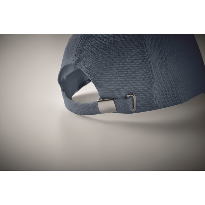 Baseball Kappe. 5 Panele. 100% Hanfgewebe 370g/m². Messing-Schnalle mit Einstecklasche. Fünf farblich abgestimmte, umstickte Belüftungslöcher. Größe 7 1/4.