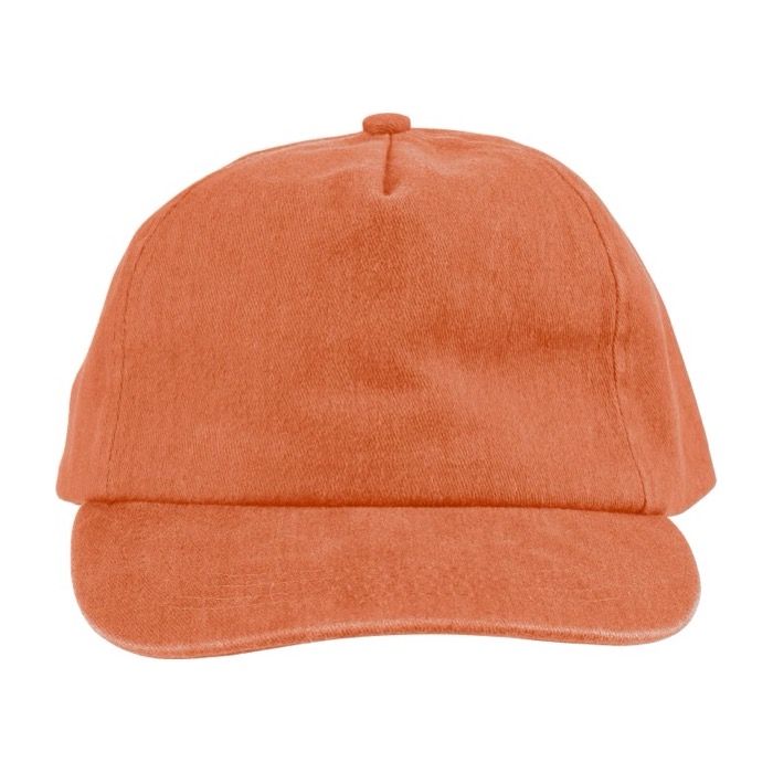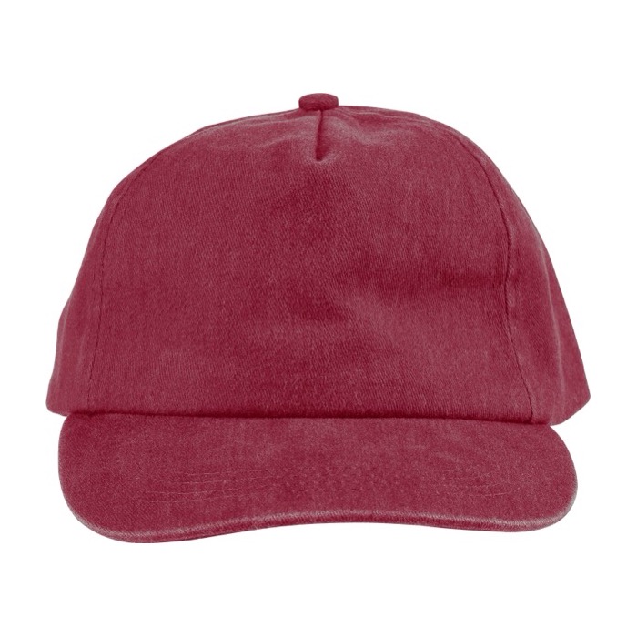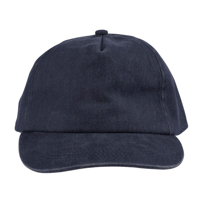 Baumwollkappe (240 g/m²) im Washed-Effekt, 5 Paneele, Schirm 7 cm. Verstellbarer Verschluss mit Messingschnalle, ohne Innenfutter