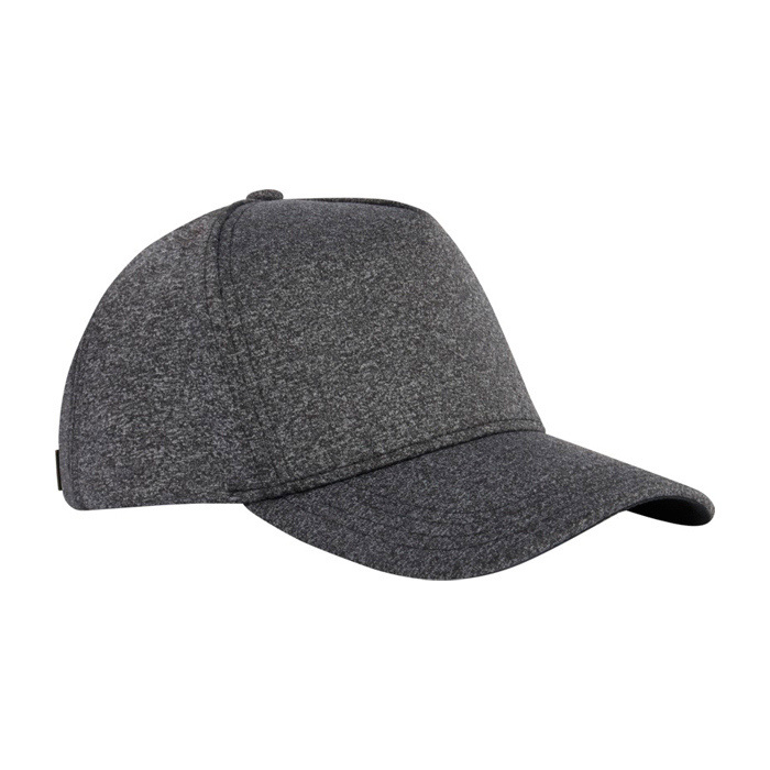 Strukturiertes vorderes Segment. Vorgebogener Schirm. Gestickte Ösen zur Belüftung. Schnallenverschluss aus Metall Kopfumfang: 58 cm.