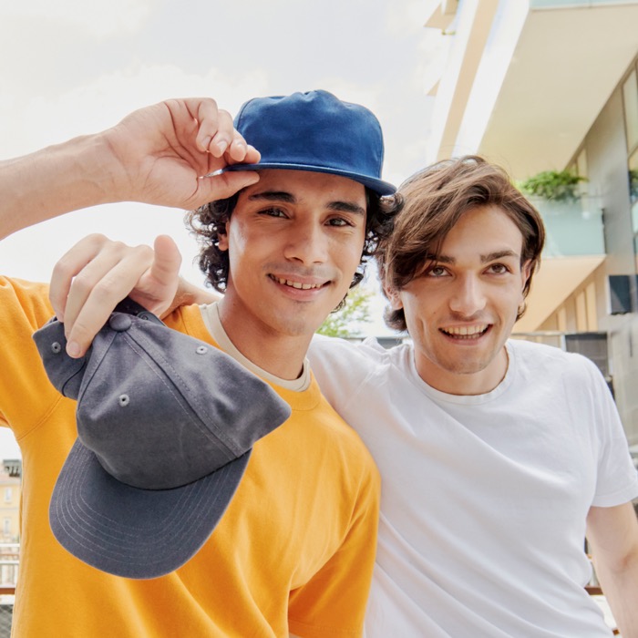 Baseballcap mit flachem Schirm aus recycelter und Bio-Baumwolle. Nachhaltiges und modernes Design, mit dem Sie Ihr Engagement zum Schutz der Umwelt zeigen.