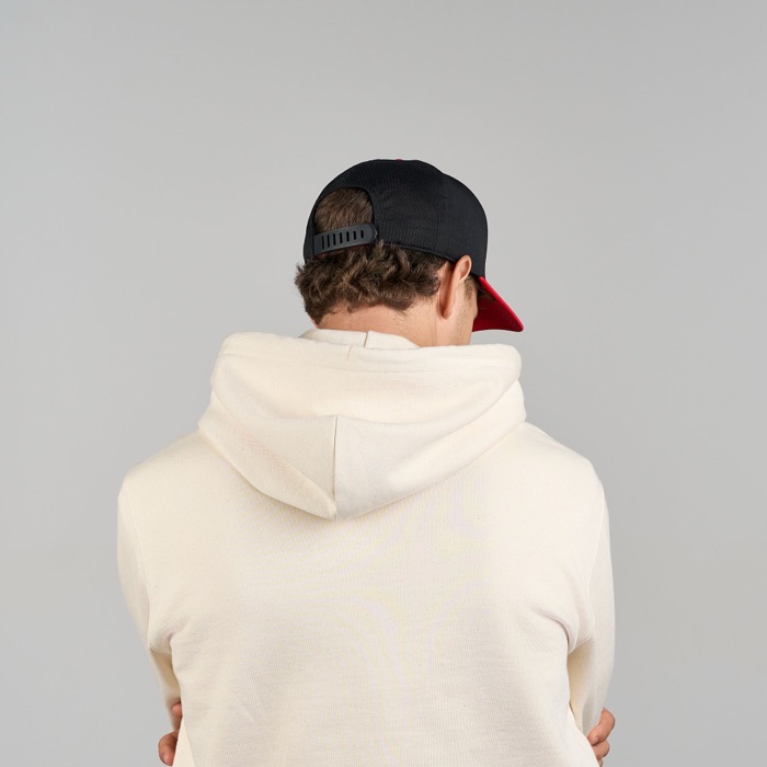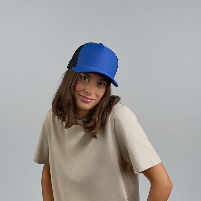 - Geschlossene Trucker-Kappe mit anpassbarem Sitz dank elastischem Mesh