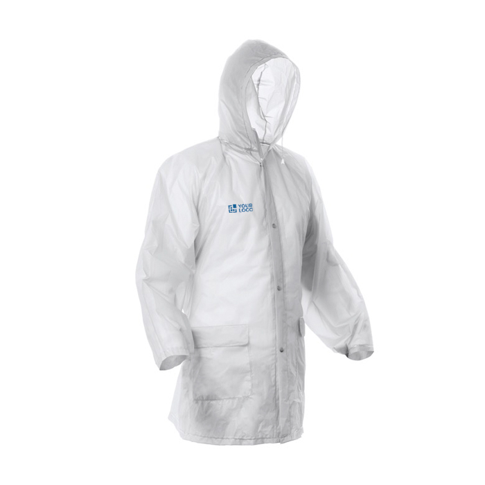 Regenmantel aus PVC mit Kapuze und Druckknöpfen mit Logo bedrucken