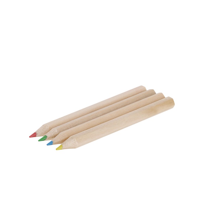Box mit 4 Holzbleistiften mit sechseckigem Schaft und Minen in mehreren Farben, gedacht für eine komfortable Nutzung im Büro, bei Schulungen oder bei Aktionen am Verkaufsort. Enthalten ist eine Weiße Kartonhülle mit Klappverschluss, die sich leicht verteilen und lagern lässt. Das Set ist für die digitale Gravur ausgelegt. So können Sie Logos oder Botschaften mit guter Detailtiefe auf der Hülle anbringen, bei zugleich ordentlicher Präsentation. Eine praktische Lösung für Veranstaltungen, Schulungsräume in Unternehmen oder Markenaktionen.