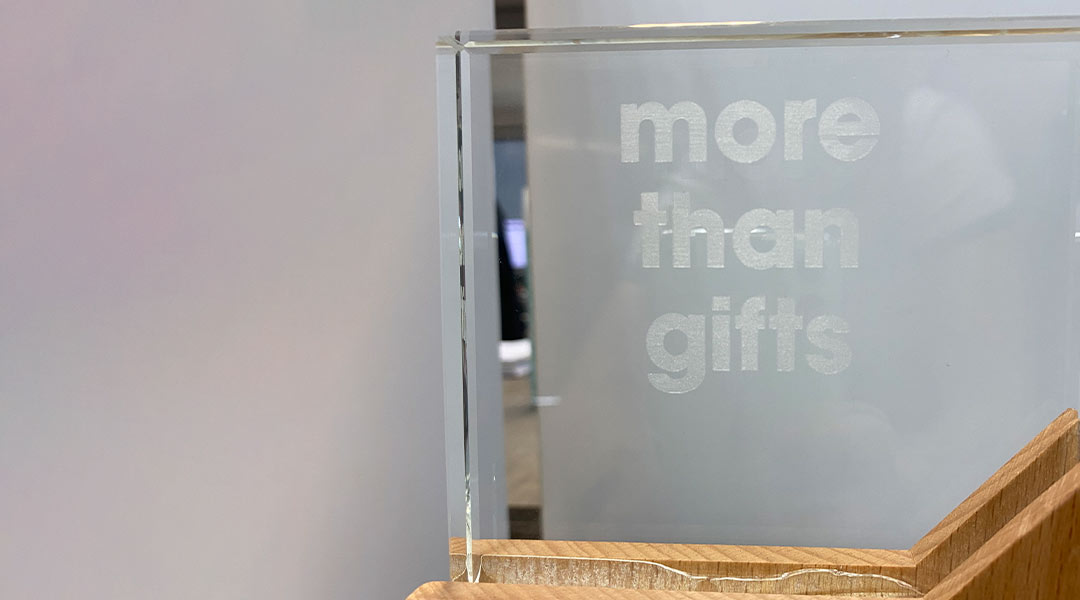 Glas als transparentes Material bekommt mit der Lasergravur einen ganz besonderen Schliff. Das Logo ist subtiler und eleganter als bei anderen Materialien.