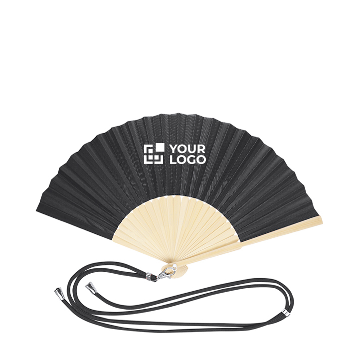 Robuster Polyester-Fächer mit flexiblen Bambusstreben, gedacht zum Mitnehmen und für den täglichen Einsatz an heißen Tagen. Er verfügt über eine farblich passende, verstellbare Kordel. So haben Sie ihn stets griffbereit. Zudem werden Verluste bei Veranstaltungen oder unterwegs reduziert. Grosse Fläche zur Personalisierung mit Logo. Geeignet für Messen, Sommerkampagnen oder Willkommensaktionen im Unternehmen.