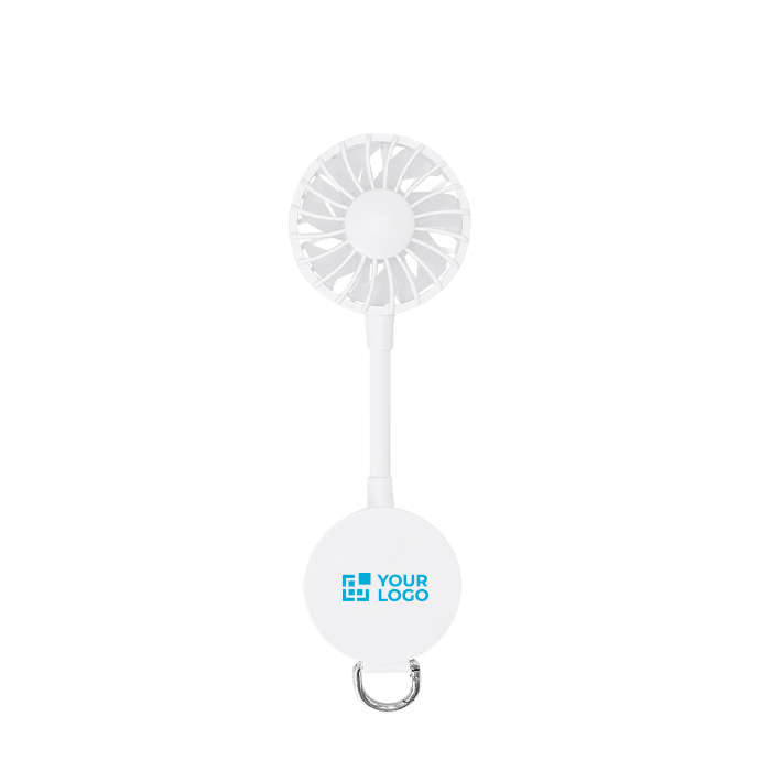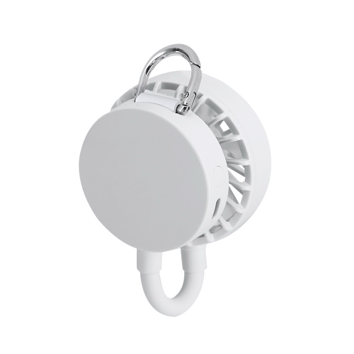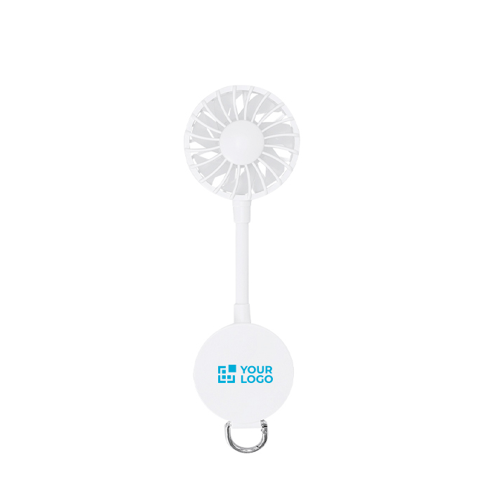 Multifunktionsventilator aus Kunststoff in Uni-Farbe mit 360°-Drehung und magnetischer Verbindung zum Zusammenklappen und schnellen Transport. Er verfügt über einen Magneten zur Befestigung am Handy sowie einen verstellbaren Ständer, der das Aufstellen auf dem Tisch oder in verschiedenen Positionen erleichtert. An der Unterseite befinden sich ein Karabinerhaken und ein Metallring zum Tragen. Er bietet 3 per Taste einstellbare Geschwindigkeiten und wird mit einem passenden USB-A-auf-USB-C-Kabel geladen; der Akku hat 300mAh. Praktisch für Aktionen bei Veranstaltungen, im Büro oder für Sommerkampagnen.