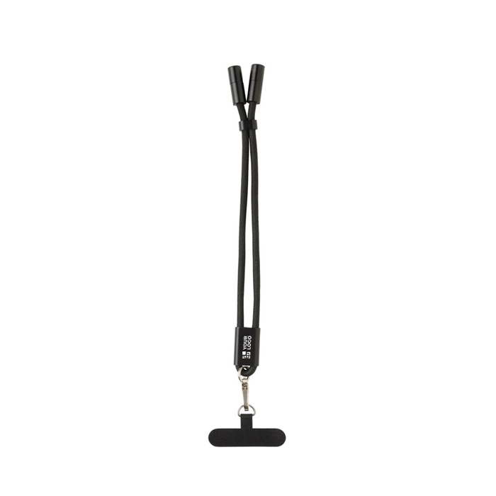 Telefonkabel aus RPET mit RCS-Zertifizierung, mit einem Recyclinganteil von 78 % bezogen auf das Gesamtgewicht des Artikels. Es wurde als hochwertiges Handgelenkband entwickelt und verfügt über eine hochfeste Schnur, einen Verbindungsring und einen Präzisionshaken, die ein versehentliches Herunterfallen verhindern und eine bequeme, freihändige Verwendung ermöglichen. Es fungiert auch als USB-C-Ladekabel mit bis zu 60 W Leistung zum schnellen Laden von Smartphones, Tablets und Laptops und ist zudem mit Datenübertragungen kompatibel. Verstärkte Anschlüsse und widerstandsfähige Materialien sorgen für eine zuverlässige Leistung im Alltag. Das Produkt ist PVC-frei und wird in einer FSC-zertifizierten Verpackung geliefert.