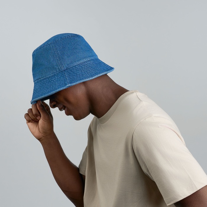 Panamahut aus Denim aus Baumwolle und recycelter Baumwolle, konzipiert für Markenaktionen im Freien. Er verfügt über Ton-in-Ton-Nähte, die dafür sorgen, dass die Veredelung besser integriert wirkt und sauber aussieht. Das Innenband aus Bio-Baumwolle verbessert die Passform und sorgt für angenehmen Tragekomfort über Stunden. Der Stoff ist mit der DyStar®-Indigo-Technologie gefärbt, die im Vergleich zu herkömmlichen Verfahren den Verbrauch von Wasser, Energie und Chemikalien reduziert. Empfohlen für Veranstaltungen, Sommeraktionen oder die Ausstattung von Mitarbeitenden.