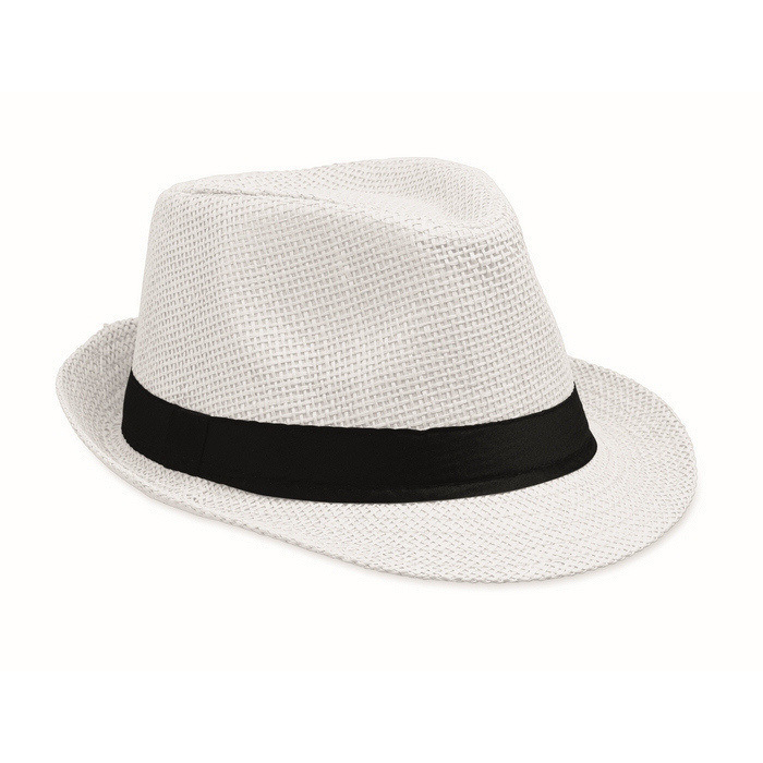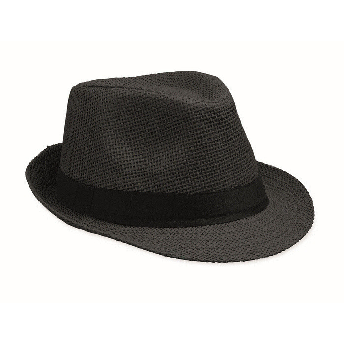 Papierstrohhut mit schwarzem Polyesterband, konzipiert für Promotionaktionen im Freien und Firmenevents. Er bietet einen bequemen Sitz und ein einheitliches Erscheinungsbild zum Ausstatten von Teams, Personal oder Teilnehmenden. Das Band kann je nach Bestellung zur Personalisierung genutzt werden. Bei Anfragen ohne Druck wird das Band lose und getrennt vom Hut geliefert, um die Montage oder die Verteilung am Zielort zu erleichtern. Geeignet für Messen, Sommerkampagnen oder Veranstaltungen.