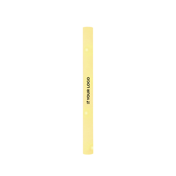 Schaumstoff-Lichtstab mit weicher, angenehmer Haptik, entwickelt, um Aktionen bei Veranstaltungen und Markenaktivitäten zu beleben. Das Innere leuchtet mit vier LED-Leuchten (Leuchtdioden), um die Sichtbarkeit in Umgebungen mit wenig Licht zu verbessern. Knopfzellen sind enthalten, und die Aktivierung erfolgt über einen Knopf an der Basis mit zwei Nutzungsmodi: Dauerlicht oder Blinklicht. Eine praktische Option zum Verteilen auf Messen, Konzerten oder Unternehmensanimationen mit Ihrem Logo.