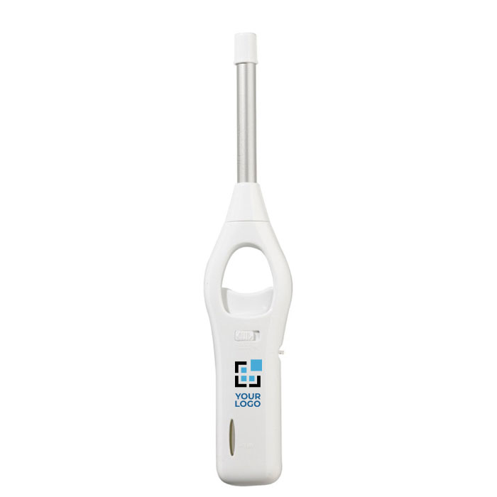 Modernes, großes Stabfeuerzeug aus Kunststoff. Ideal zum Anzünden von Kerzen, Windlichtern oder einem Grill. Große Werbefläche. Mit Kindersicherung.