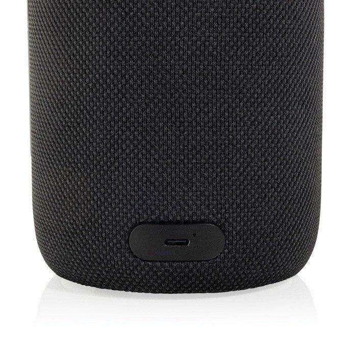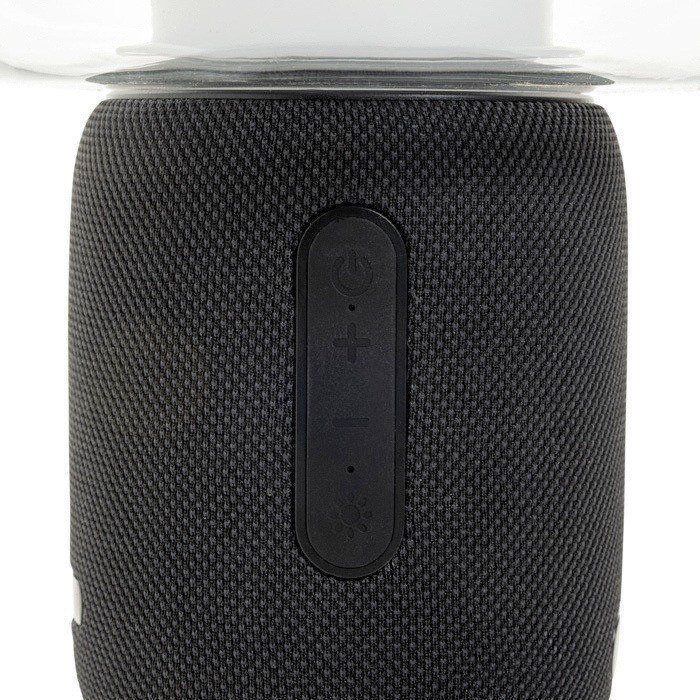 Lampe mit tragbarem Lautsprecher aus RCS-zertifiziertem recyceltem Kunststoff (Recycled Claim Standard). Entwickelt, um Klang und Beleuchtung in einem Gerät zu vereinen. Sie integriert einen 10W-Lautsprecher mit Bluetooth-5.3-Konnektivität und ein Mikrofon für Freisprechanrufe sowie einen wiederaufladbaren Lithium-Ionen-Akku mit 2000mAh für bis zu 7 Stunden Wiedergabe bei 50% Lautstärke. Sie verfügt über 8 LEDs mit drei Lichtmodi (kalt, normal und warm) und wird über USB-C geladen. Praktisch als Unternehmensgeschenk, für Veranstaltungen oder für den Einsatz am Arbeitsplatz.