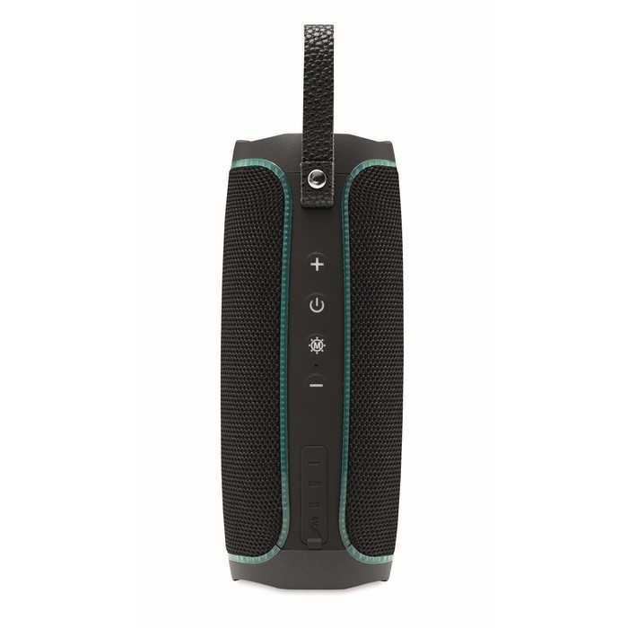 Wireless LED-Lautsprecher 2x5W. Mit wechselndem farbigem LED Licht. Spritzwassergeschützt nach IPX4. Inkl. wiederaufladbarer 1800 mAh Li-Ion-Akku.