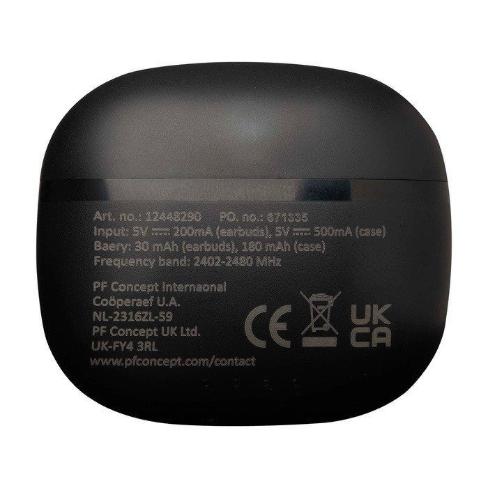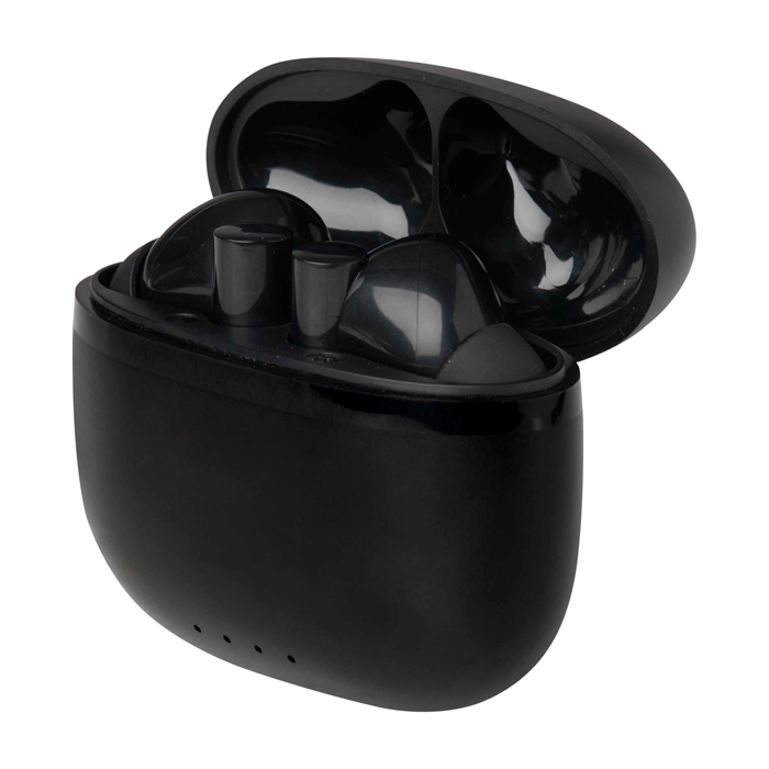 TWS-Kopfhörer aus recyceltem Kunststoff mit Bluetooth®-Konnektivität, entwickelt für kabellose Telefonate und Musik im Alltag. Sie verfügen über Silikon-Ohrpolster, die für einen bequemen und stabilen Sitz sorgen, und werden in einem kompakten Ladecase aufbewahrt, damit sie sich leicht transportieren lassen. Sie bieten bis zu 4 Stunden Wiedergabe oder Gesprächszeit und sind in etwa 1 bis 1,5 Stunden wieder aufgeladen. Inklusive 30 cm Ladekabel Typ-A auf Typ-C. Ideal für Markenaktionen bei Veranstaltungen und als Firmengeschenke.