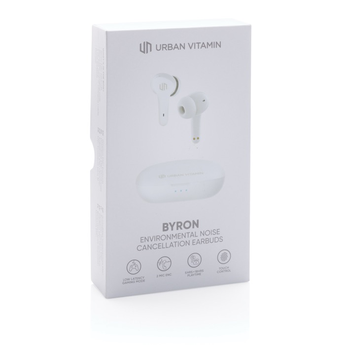 Seien Sie mit diesen kompakten, aber leistungsstarken Ohrhörern wirklich drahtlos. Die Ohrhörer sind mit einem Gaming-Modus mit niedriger Latenz (65 MS) ausgestattet, um die Tonverzögerung zwischen Ihrem Bildschirm und dem Audio beim Spielen zu minimieren. Dank der Umgebungsgeräuschunterdrückung (ENC) sind Ihre Telefongespräche kristallklar, da Umgebungsgeräusche während Ihres Anrufs herausgefiltert werden. Mit Touch-Control-Funktion zur Anrufannahme. Die komfortablen Ohrhörer haben eine Hörzeit von bis zu 5 Stunden und das Ladeetui im Taschenformat ermöglicht bis zu 18 Stunden Wiedergabe. Das IPX 4-Rating macht die Ohrhörer wetter- und schweißfest. Urban Vitamin Artikel werden ohne PVC hergestellt und sind in einer Verpackung mit besonders wenig Kunststoff verpackt.