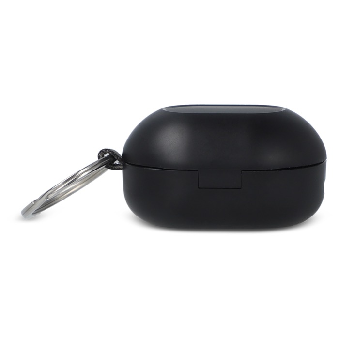 Schwarze kabellose Bluetooth-Kopfhörer in Ladebox bedrucken