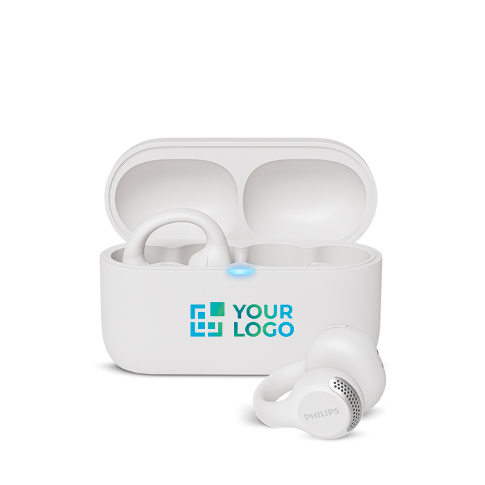Offene Kopfhörer aus RCS-zertifizierten recycelten Materialien, entwickelt, damit Sie Musik hören können, ohne Ihre Umgebung aus den Augen zu verlieren. Sie bieten bis zu 7 Stunden Wiedergabezeit und mit dem Ladeetui bis zu 28 Stunden, ideal für den täglichen Einsatz unterwegs oder im Büro. Die IPX4-Zertifizierung sorgt für Schutz gegen Schweiß und Spritzwasser und unterstützt die Nutzung bei aktiven Routinen. Eine praktische Option für Markenaktionen bei Veranstaltungen, Schulungen oder als technisches Unternehmensgeschenk. Marke Philips.