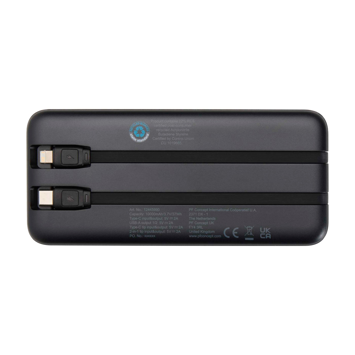 Powerbank aus recyceltem Kunststoff mit 2 Kabeln 10.000 mAh