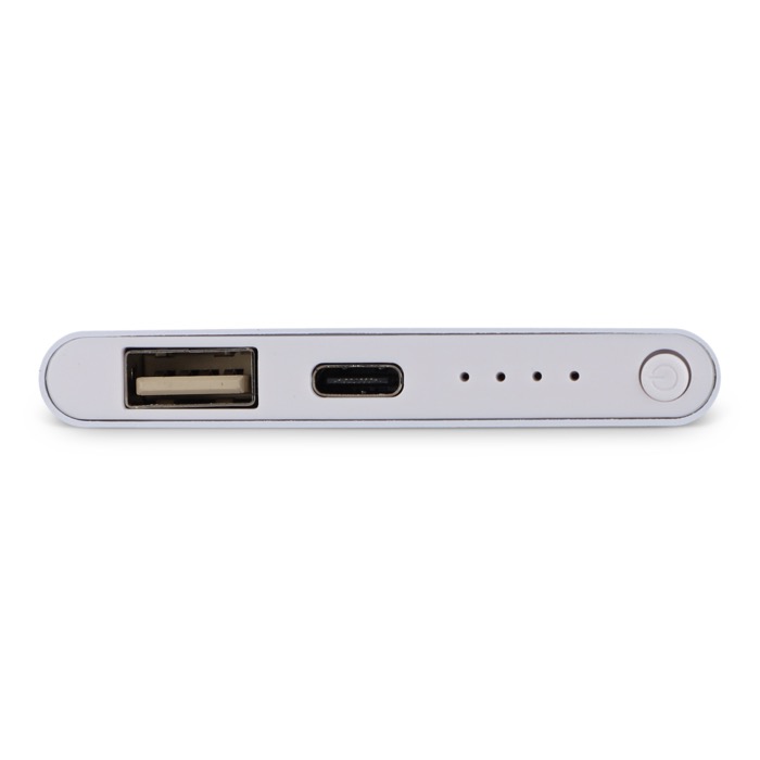 Elegante Powerbank mit 4000 mAh, kompakt und leicht, mit USB-A und USB-C Anschlüssen. Sichert zuverlässige Konnektivität für Kunden und Mitarbeiter.