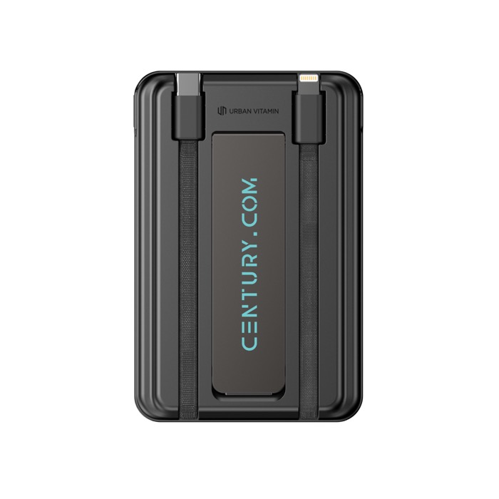 Nachhaltige 5-in-1-Powerbank mit Ladekabeln und Ständer, 5.000 mAh