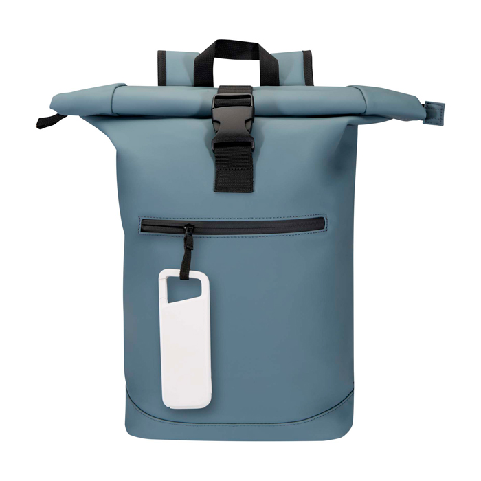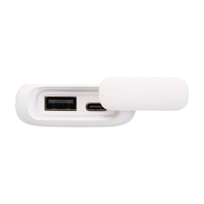 Powerbank mit 5.000 mAh, hergestellt aus recyceltem Kunststoff, mit wasserdichtem Design nach IPX5 (beständig gegen Regen und leichten Spritzwasserdruck). Ausgestattet mit einem integrierten Karabiner zur Befestigung, geschützten USB-Anschlüssen mit Silikonabdeckung und LED-Anzeige für den Ladezustand. Ideal für den Outdoor-Einsatz, Wanderungen oder den täglichen Gebrauch unterwegs.