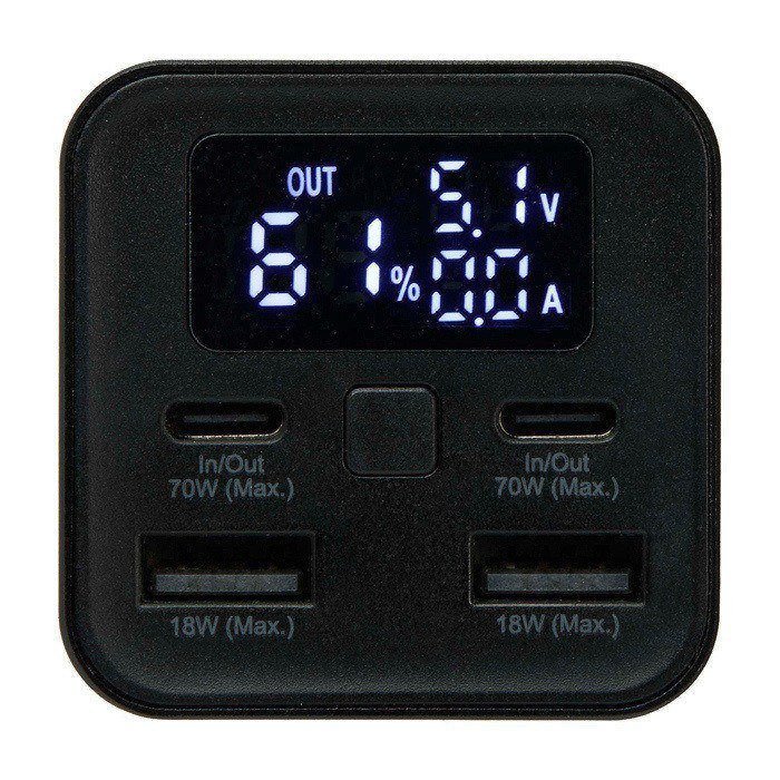 Sorgen Sie dafür, dass Ihre Geräte immer geladen sind mit dieser starken Powerbank, mehreren Anschlüssen und integriertem Display zur Kontrolle.