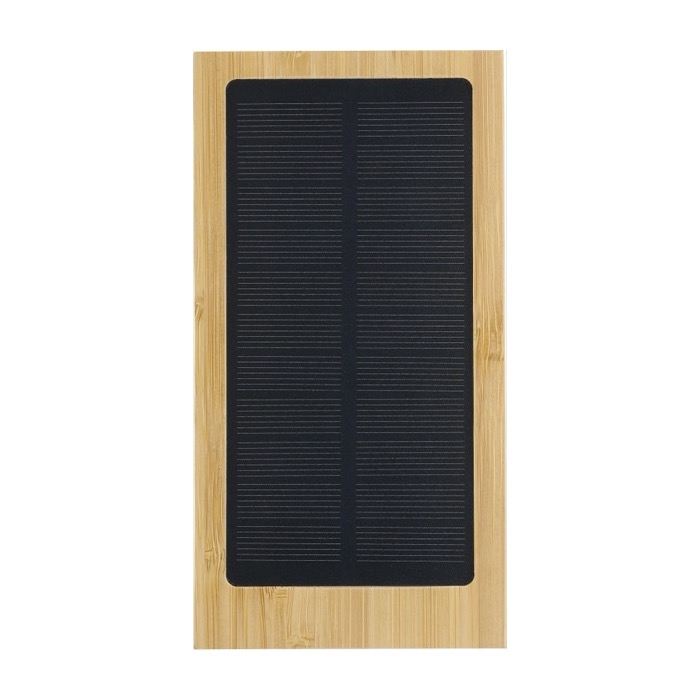 Powerbank aus Bambus mit Solarpanel für nachhaltiges Image, 4.000 mAH