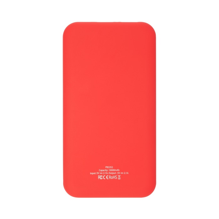 Powerbank, zweifarbiger externer ABS-Akku mit 10000 mAh. LED-Ladeanzeige. DC 5 V/2,1 A Stromausgang. Inklusive Micro-USB-Kabel.