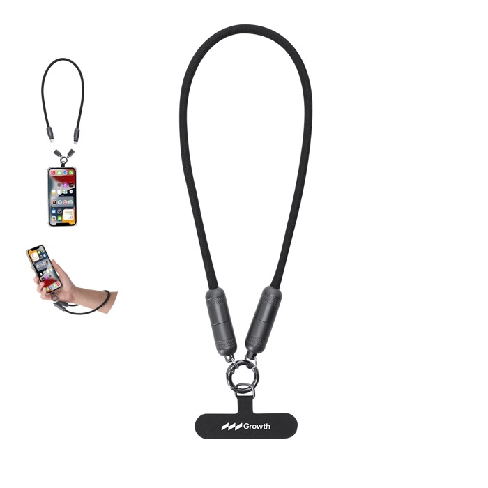 Ladearmband mit Datenübertragungsfunktion und Smartphone-Halterung. Mit Typ-C-Ein-/Ausgang und 60W Leistung für Schnellladung. Funktionalität und Komfort in einem Accessoire vereint.