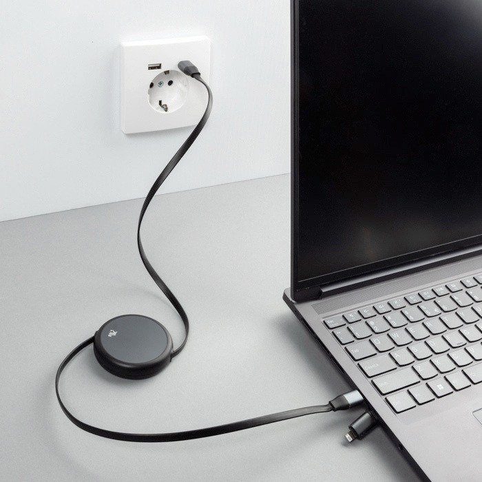 - Einziehbares 2-in-1-Kabel für schnelles Laden und Ordnung im Alltag