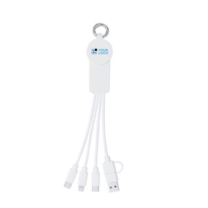 Ladegerät mit leuchtendem Logodruck und verschiedenen Anschlüssen