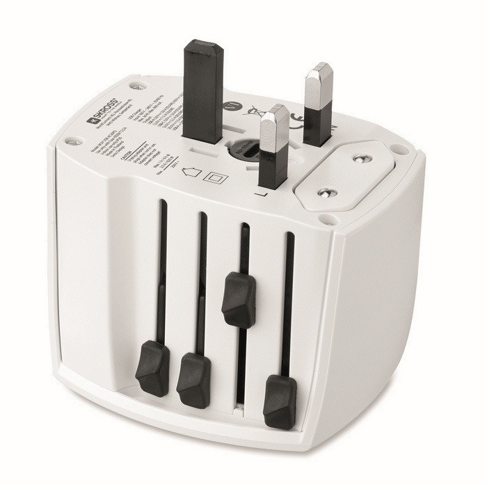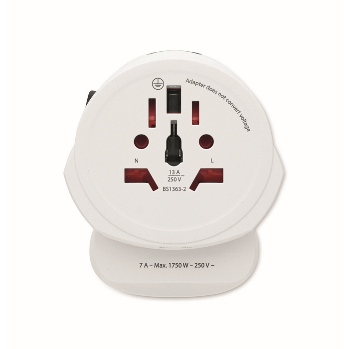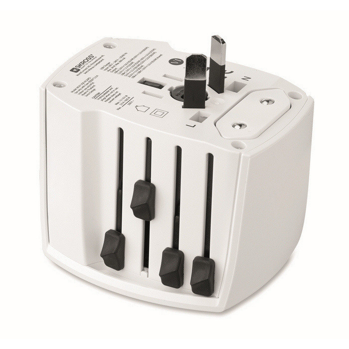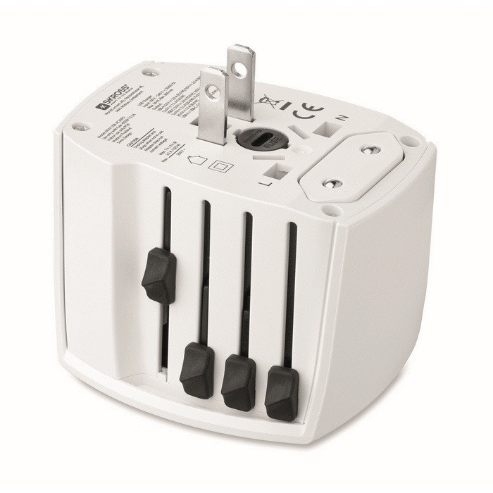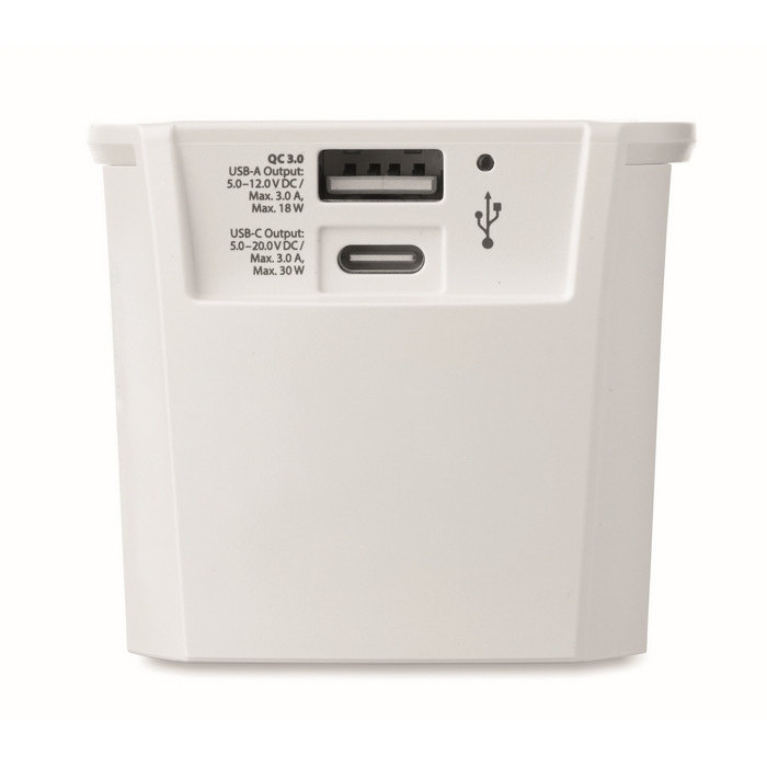 2-poliger Reiseadapter mit USB-A- und USB-C-Anschlüssen, entwickelt zum Laden von Geräten in verschiedenen Ländern in einem kompakten Format. Bietet bis zu 30 W über USB-C und 18 W über USB-A für schnelles und sicheres Laden, geeignet für Smartphones, Tablets und Arbeitszubehör. Das universelle Design erleichtert die Nutzung unterwegs und reduziert die Notwendigkeit, mehrere Ladegeräte mitzunehmen. Praktische Option für Willkommenspakete, internationale Veranstaltungen oder Reiseausstattung für Vertriebsteams.