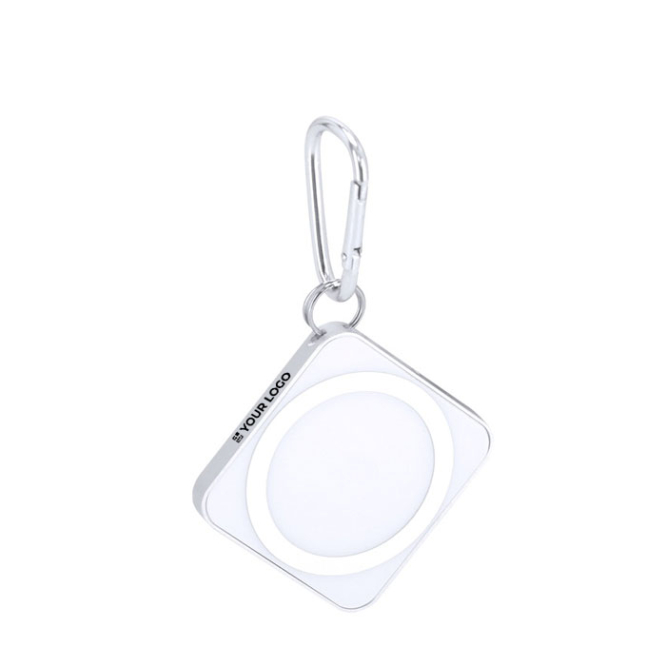 15W kabelloses Ladegerät aus Aluminium. Entwickelt zum Laden von Smartphones, Kopfhörern und Smartwatches. Mit magnetischer Befestigung. Enthält einen Metallkarabiner für den Transport. Typ-C-Anschluss.
