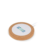 Drahtloses Ladegerät, hergestellt aus Kork und recyceltem Abs-Material. Kompatibel für Handys, die Qi unterstützen. Leistung: 5W, 7,5W, 10W, 15W. Überhitzungsschutz. Mit großem Druckbereich für Vollfarbaufdruck und 1 Meter Ladekabel. Ideal für Ihr grüneres und nachhaltigeres (Heim-)Büro.
