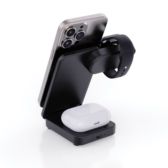 Magnetisches 3-in-1-Ladegerät kabellos aus recyceltem Kunststoff, 15 W