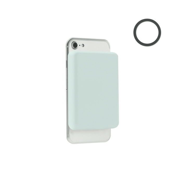 Magnetische Powerbank 5000 mAh mit kabellosem Ladegerät 10 W. Ausgang: DC 9V/1 ,1A (10W), ideal zum schnellen Aufladen. Kompatibel mit iPhone® 12 und neueren Modellen. Inkl. magnetischen Metallring zur Unterstützung anderer nicht-magnetischer, wireless aufladbarer Telefone.