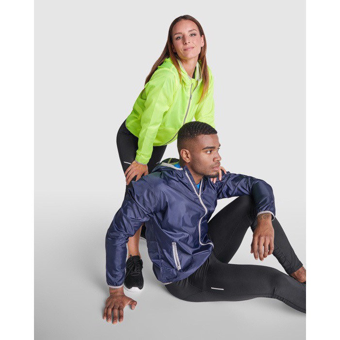 Windjacke mit Kapuze und faltbarer Rückentasche Roly Direct