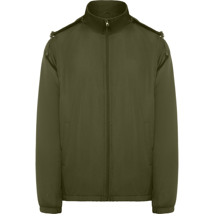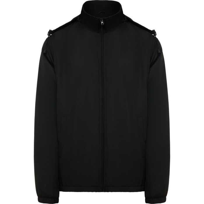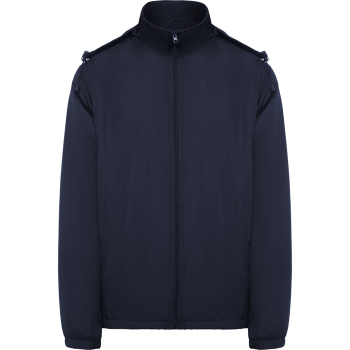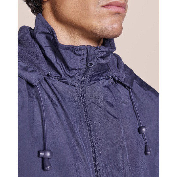 Diese leichte, wasserabweisende Jacke verfügt über eine abnehmbare Kapuze mit Verstellmöglichkeiten. Innenfutter aus Microfleece. Vorderer Reißverschluss mit Kinnschutz. Gummizug an den Ärmeln. Zwei Seitentaschen mit Reißverschluss und eine Brustinnentasche links.