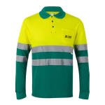 Langärmeliges, zweifarbiges Piqué-Poloshirt (150g/m2) aus Baumwolle (55%) und Polyester (45%). Knöpfe und Kragen in Kontrastfarbe. Kragen und Manschetten gerippt. Reflektierende Streifen auf dem Rumpf und den Ärmeln. Inklusive einer Brusttasche.