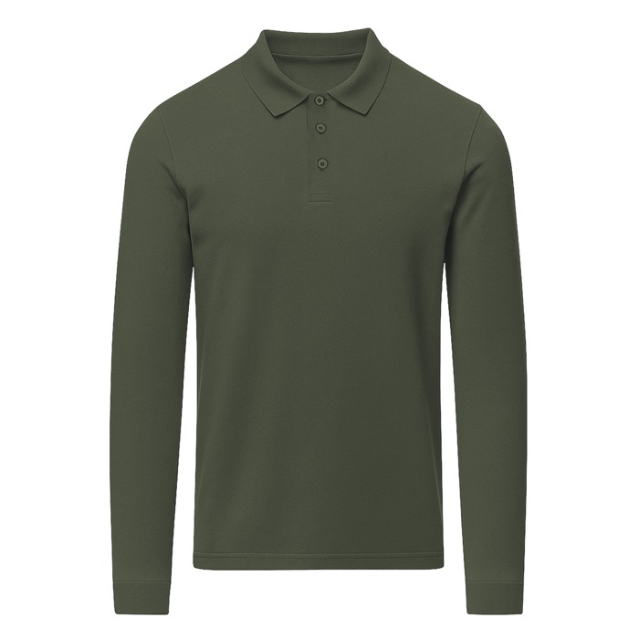 Unisex-Poloshirt mit langen Ärmeln aus Piqué-Stoff. Kragen und Bündchen aus elastischem 1x1-Rippstrick mit Elasthan für besseren Sitz und Komfort. Knopfleiste mit drei farblich abgestimmten Knöpfen und verstärktem Nackenband.