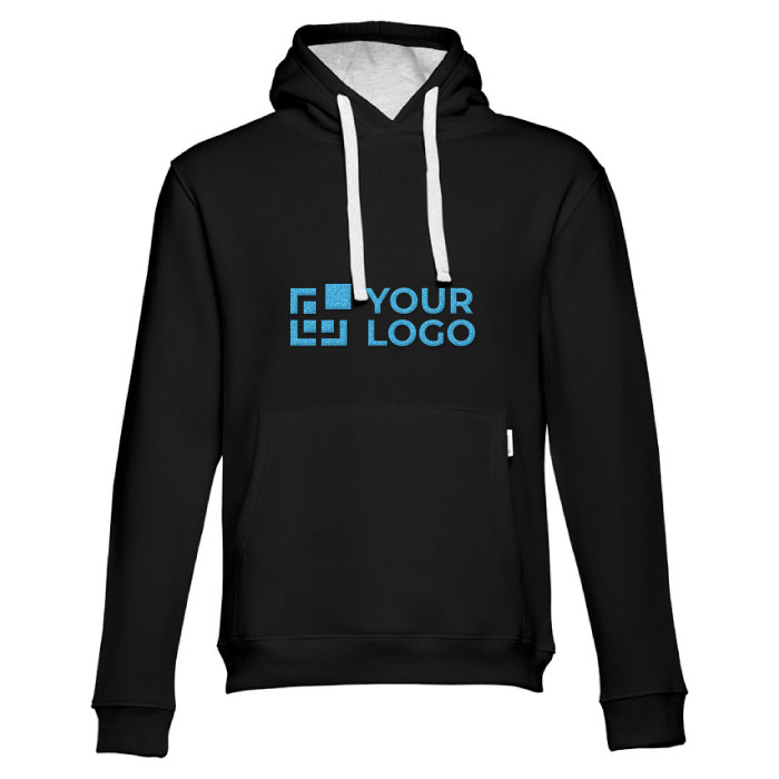 Sweatshirts mit Kängurutasche und Kapuze mit Kordelzug, die Sie mit Ihrem Logo für Ihre Zielgruppe bedrucken lassen können. Perfekt, damit Ihr Logo auf der Oberfläche hervorsticht.