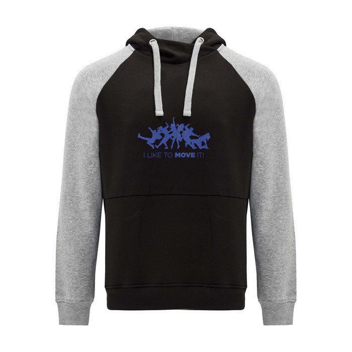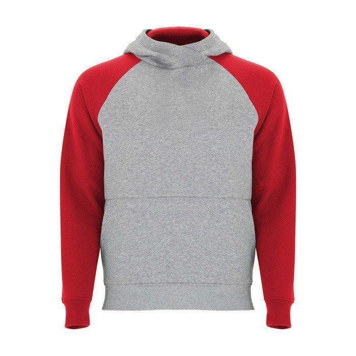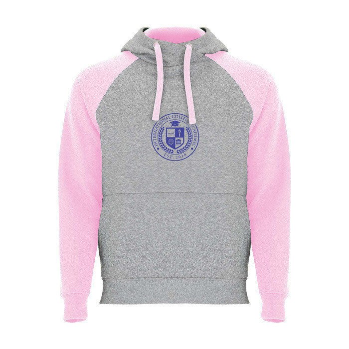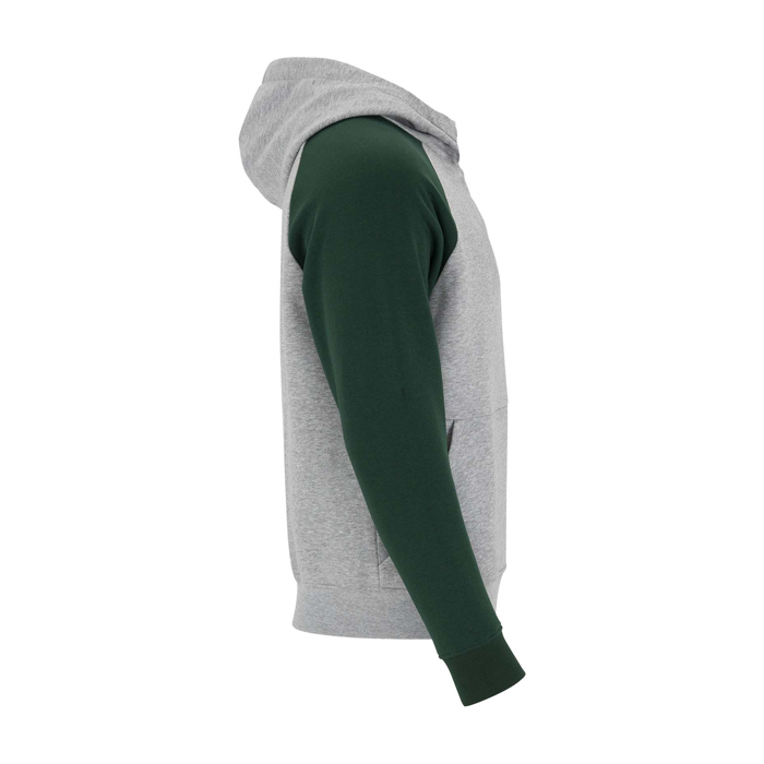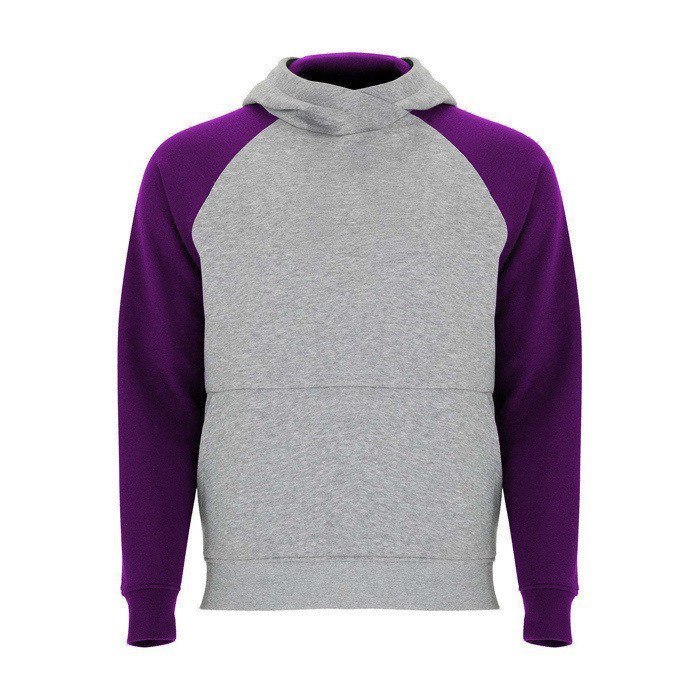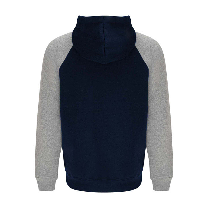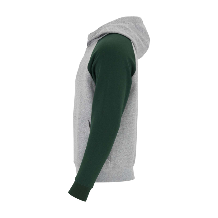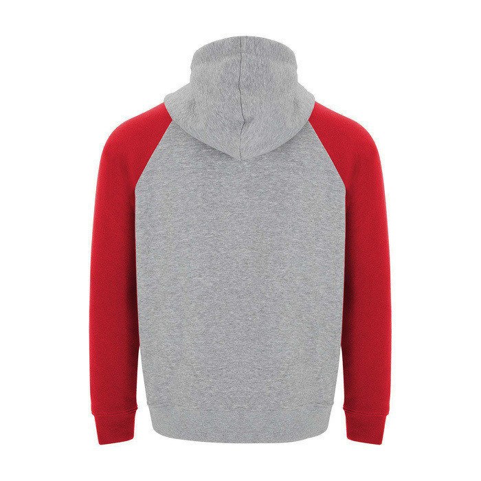 Unisex-Kapuzenpullover mit zweifarbigem Design und überkreuztem Kragen mit Metallösen. Das Kapuzeninnere und die Kordel sind farblich abgesetzt, ebenso wie die Raglanärmel. Mit Kängurutasche sowie Bündchen und Saum aus elastischem 1×1-Rippstrick. Abnehmbares Etikett.
