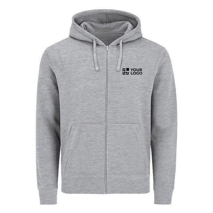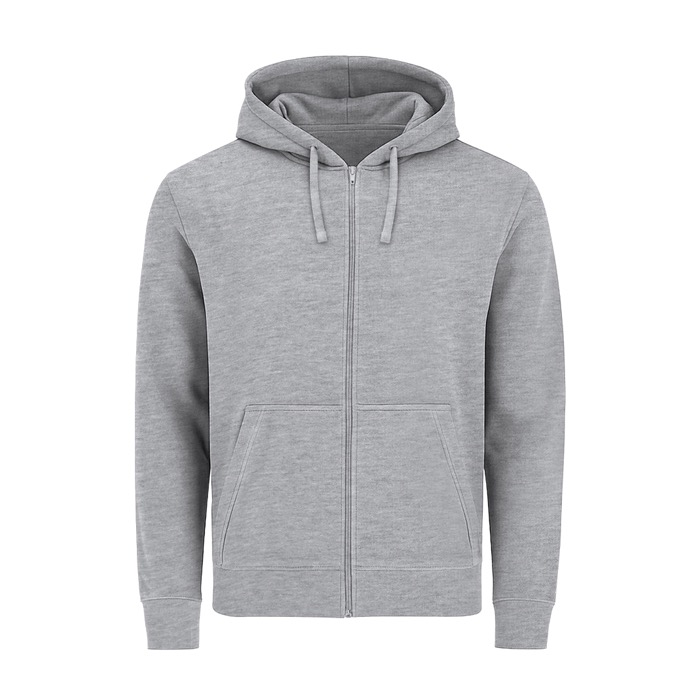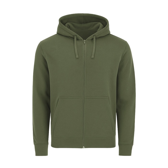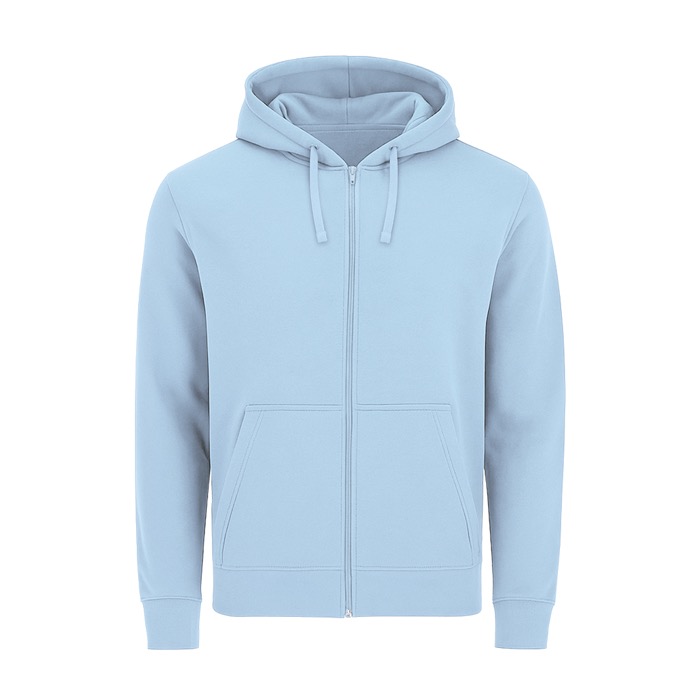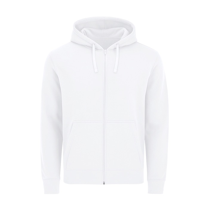 Unisex-Hoodie mit doppellagiger, farblich abgestimmter Kapuze. Hergestellt aus Baumwolle und Polyester, innen weich angeraut (280 g/m²). Durchgehender Reißverschluss, Kordelzug und Metallösen in passender Farbe. Kängurutasche, verstärktes Nackenband, Bündchen und Saum aus 1x1-Rippstrick mit Elasthan.
