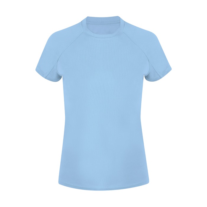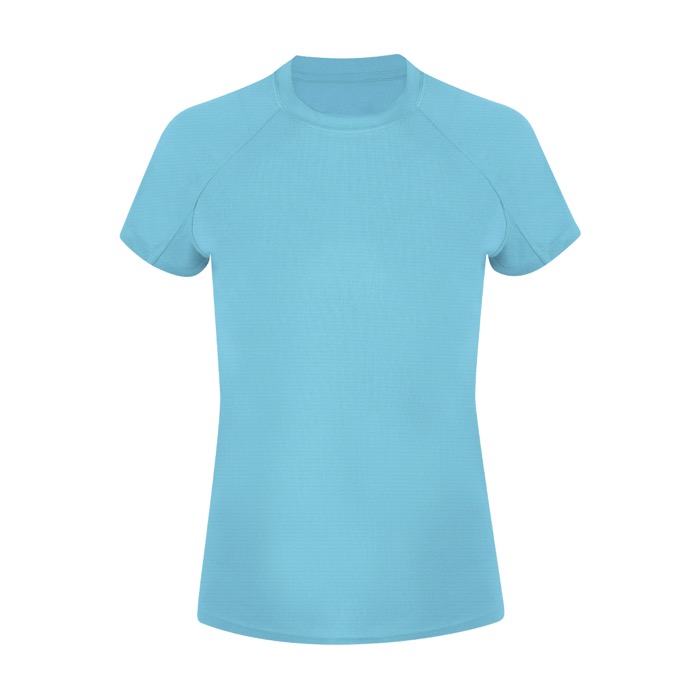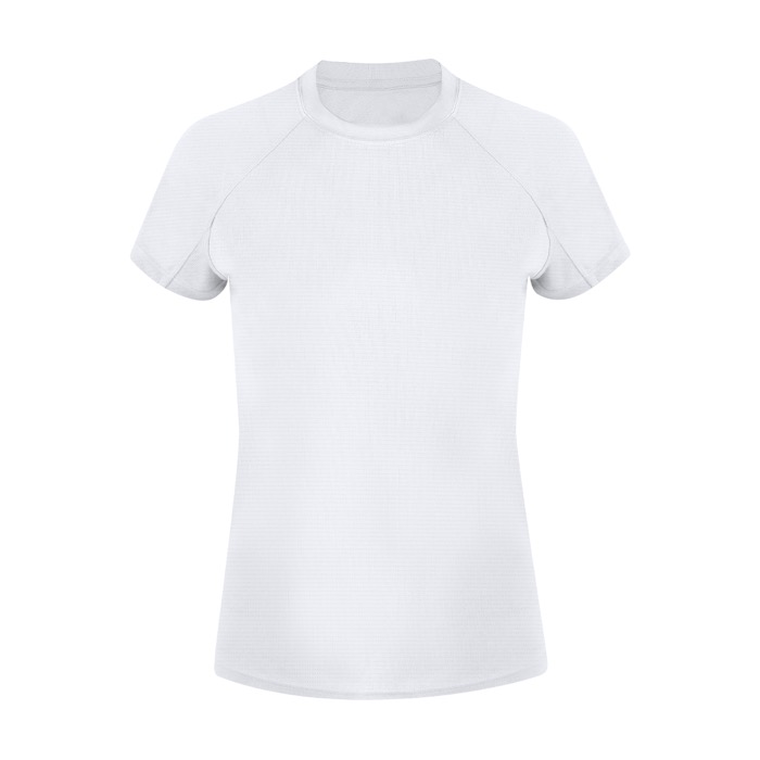 Technisches Damen-T-Shirt mit kurzen Raglanärmeln aus Polyester mit Waffel-Interlock-Struktur. Es verfügt über die Cool-Dry-Technologie, die die Atmungsaktivität unterstützt und das Trocknen bei Trainings, Messen oder aktiven Arbeitstagen beschleunigt. Overlock-Nähte an Armloch und Ärmeln verbessern die Passform und die Haltbarkeit bei intensiver Nutzung. Kragen und Nackenband Ton in Ton für ein sauberes Finish. Eine praktische Option für Teambekleidung, sportliche Unternehmensveranstaltungen oder Markenaktionen mit Logo.