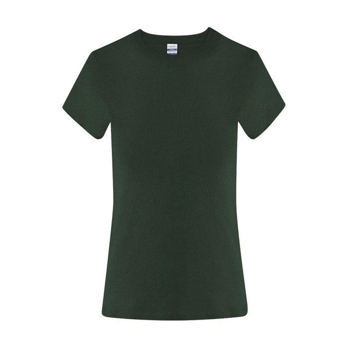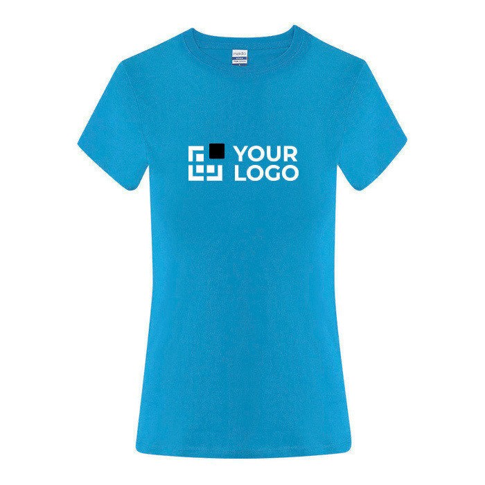 Kurzarm-Damen-T-Shirt aus weicher Baumwolle in Single-Jersey mit 150 g/m². Seitennähte helfen dabei, die Form zu erhalten, und der feminine Schnitt ist für den täglichen Einsatz ausgelegt. Der Rundhalsausschnitt aus 1x1-Rippstrick sorgt für Strapazierfähigkeit bei dauerhaftem Tragen, während das tonale Nackenband die Innenverarbeitung verbessert. Ein vielseitiges Kleidungsstück zur Ausstattung von Teams, für Merchandising-Aktionen oder als Personalbekleidung auf Messen und Veranstaltungen mit Ihrem Logo.