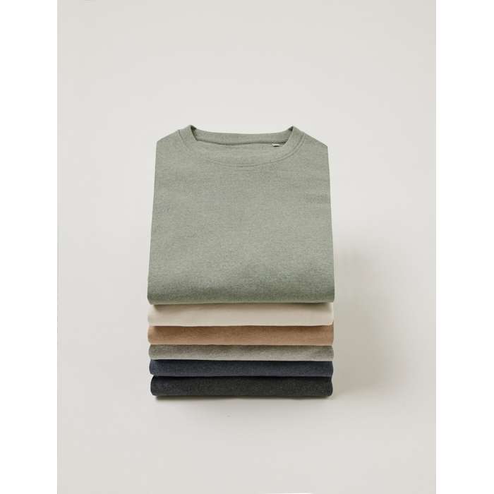 Unisex-T-Shirt mit Regular-Fit Passform aus 100% Baumwolle, davon 50% recycelt und 50% Bio-Baumwolle, in 180gr/m². Wir verzichten auf den Färbeprozess. Wir haben recycelte Baumwolle in ihrer bestehenden Farbe mit reiner Bio-Baumwolle gemischt, was den schönen Heather-Melange-Effekt erzeugt. Die Verwendung von tatsächlich recycelten und biologischen Stoffen und die Angaben zur Umweltverträglichkeit werden durch den Einsatz der bahnbrechenden AWARE™- und Blockchain-Technologie garantiert. Durch Scannen des QR-Codes erhalten Sie Zugang zu einem speziellen digitalen Pass des Produkts. 2% des Erlöses jedes verkauften Produkts werden an Water.org gespendet. Dieses Produkt ist nach OEKO-TEX® STANDARD 100, 2303045 Centexbel zertifiziert. Aufgrund der Natur von recycelten Garnen können Verunreinigungen und Farbabweichungen auftreten.