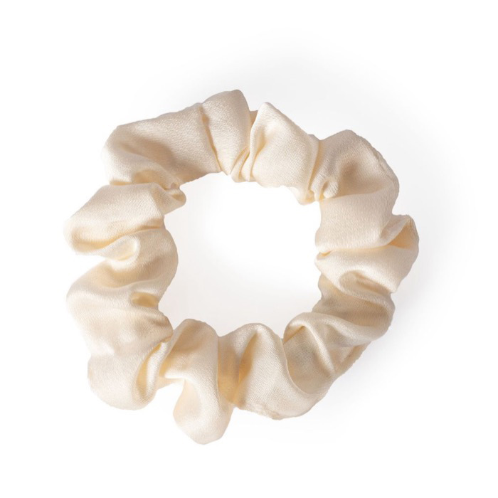 Haargummi aus Satin mit einem Textiletikett für Ihren Logodruck