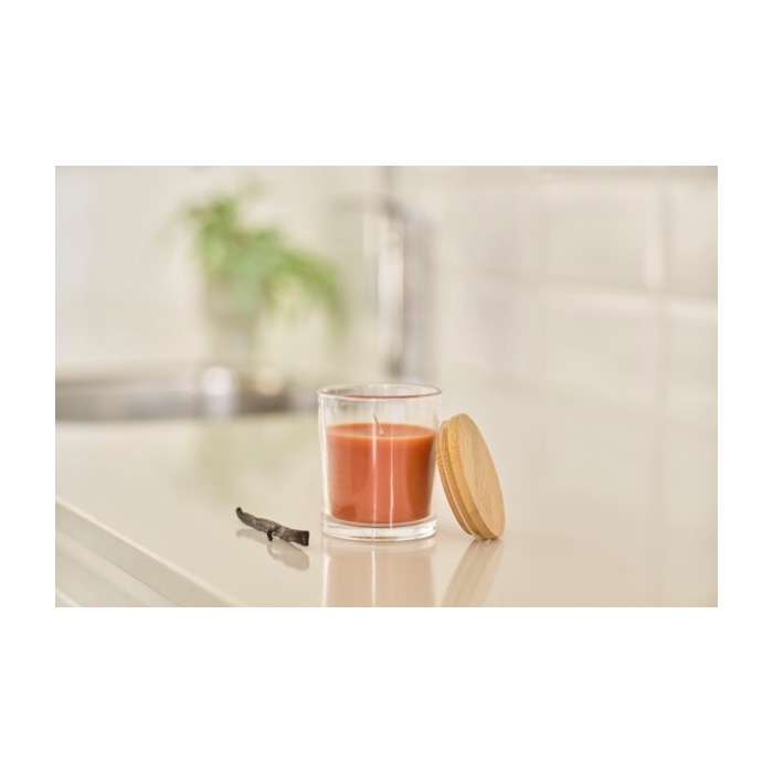 Vanilleduftkerze im Glas mit Bambusdeckel