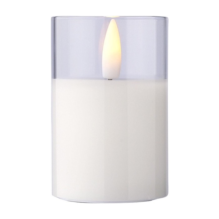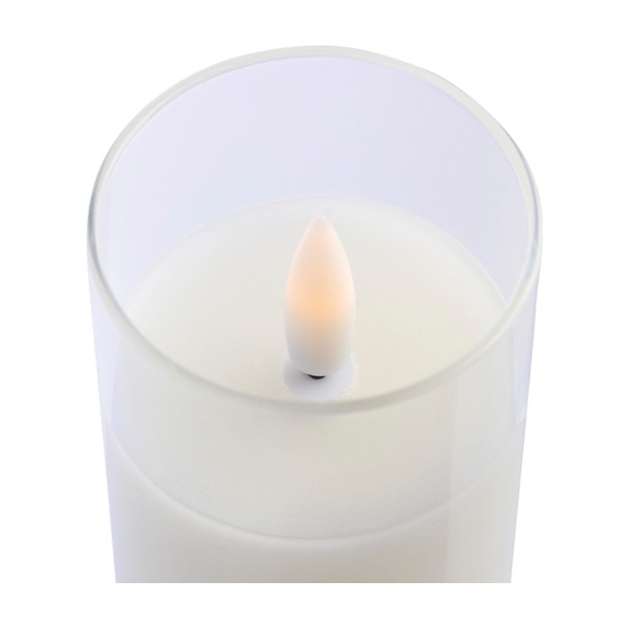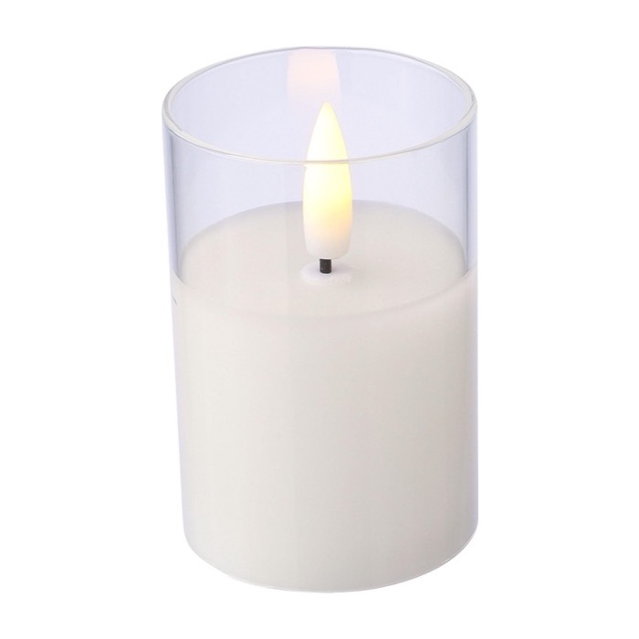 LED-Kerze mit realistischem Flammeneffekt im Glasgefäß